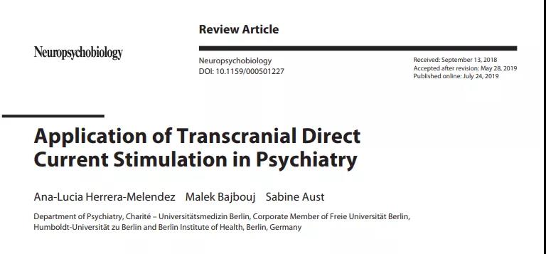 [1]Herrera-Melendez Ana-Lucia, Bajbouj Malek, Aust Sabine. Application of Transcranial Direct Current Stimulation in Psychiatry.. 2019, :1-12.